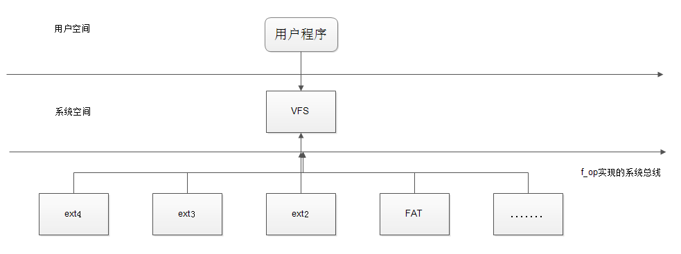 linux系统为了能支持多种多样的文件系统,所以弄了一层虚拟文件系统,它规定一套所有文件系统需要遵守的标准接口。用户只需要操作虚拟文件系统即可操作所有的文件系统。如下:
