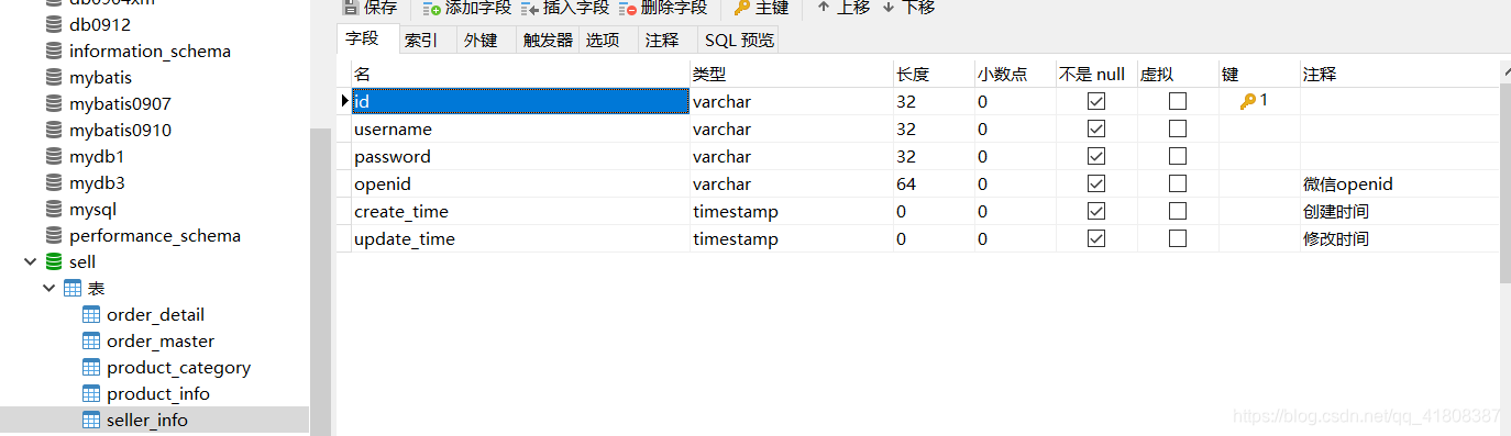 共对五个表进行了反向工程,但具体只使用了seller_info表