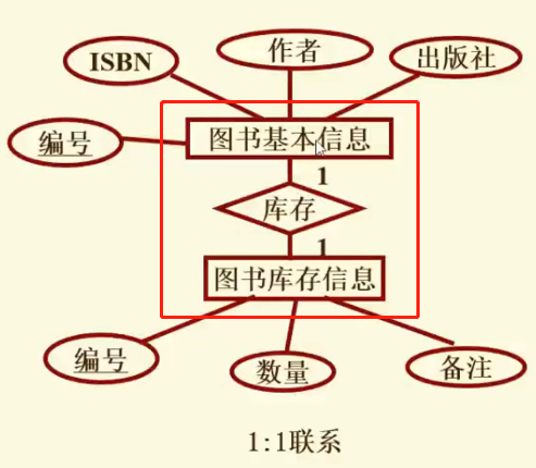 1:1联系:在任意一个实体中加入另一个实体的码和联系类型的属性(随便加)