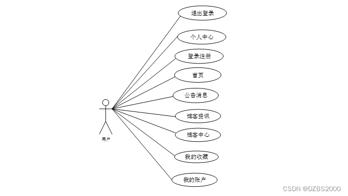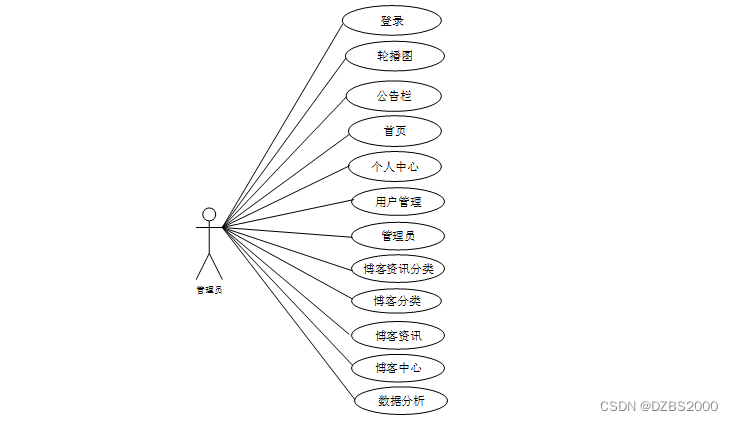 通过2.3功能的分析,得出了本个人博客系统 的用例图: