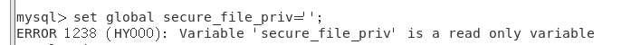 又因为 secure_file_priv 参数是只读参数,不能使用set global命令修改。