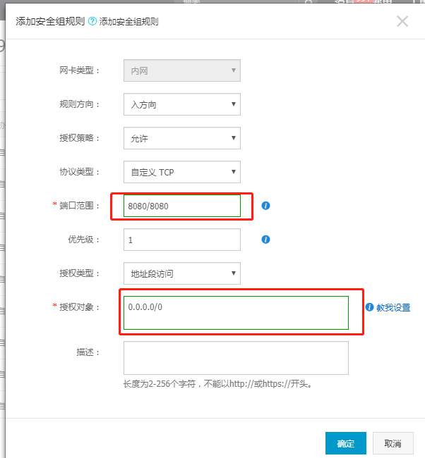 2.授权对象:0.0.0.0/0表示允许任意公网IP地址连接实例,如果有只允许特定ip访问请参考以下网址