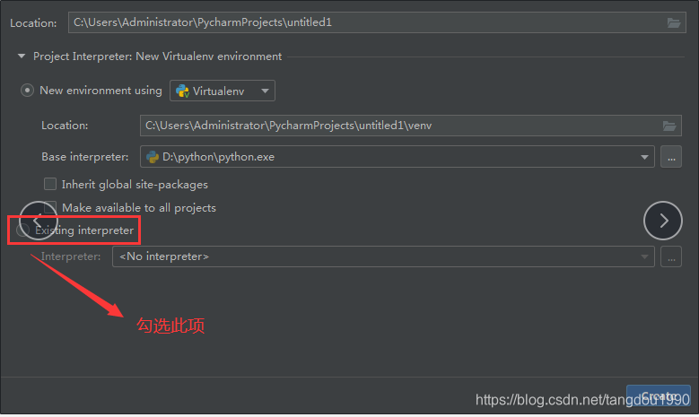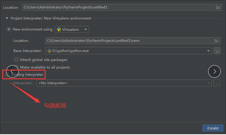 2.如果想创建项目的时候没有多余的子文件,请按如下操作(创建工程的时候,选择一下本地解释器)