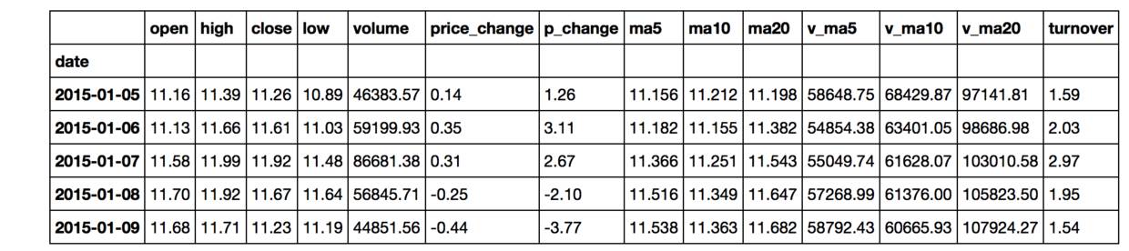 'p_change', 'ma5', 'ma10', 'ma20', 'v_ma5', 'v_ma10', 'v_ma20',