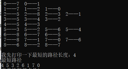 cout<<endl<<"我先打印一下最短的路径长度:"<<first[u]<<endl;