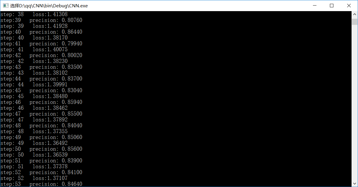 printf("step:%d precision: %.5f\n",++step,1.0*sum/test_number);