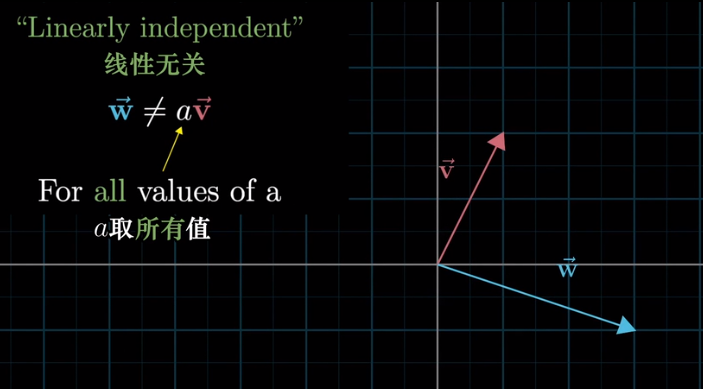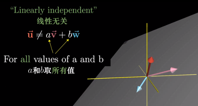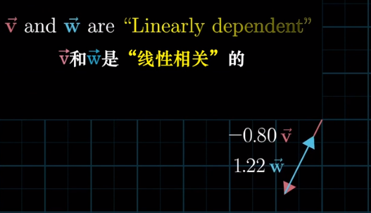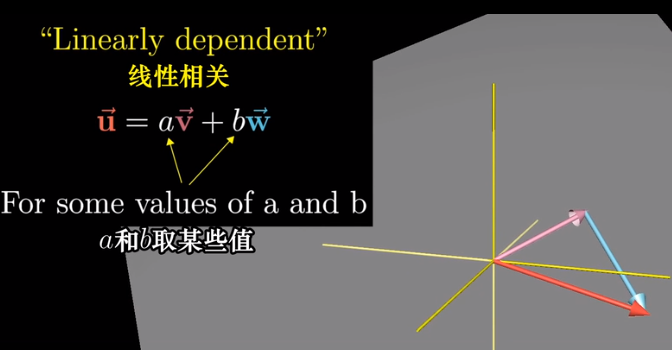 一组向量中,至少有一个是多余的,没有对张成空间做出任何贡献,并且可以移除其中一个而不减少张成的空间,当这种情况发生时,称它们是“线性相关”的。