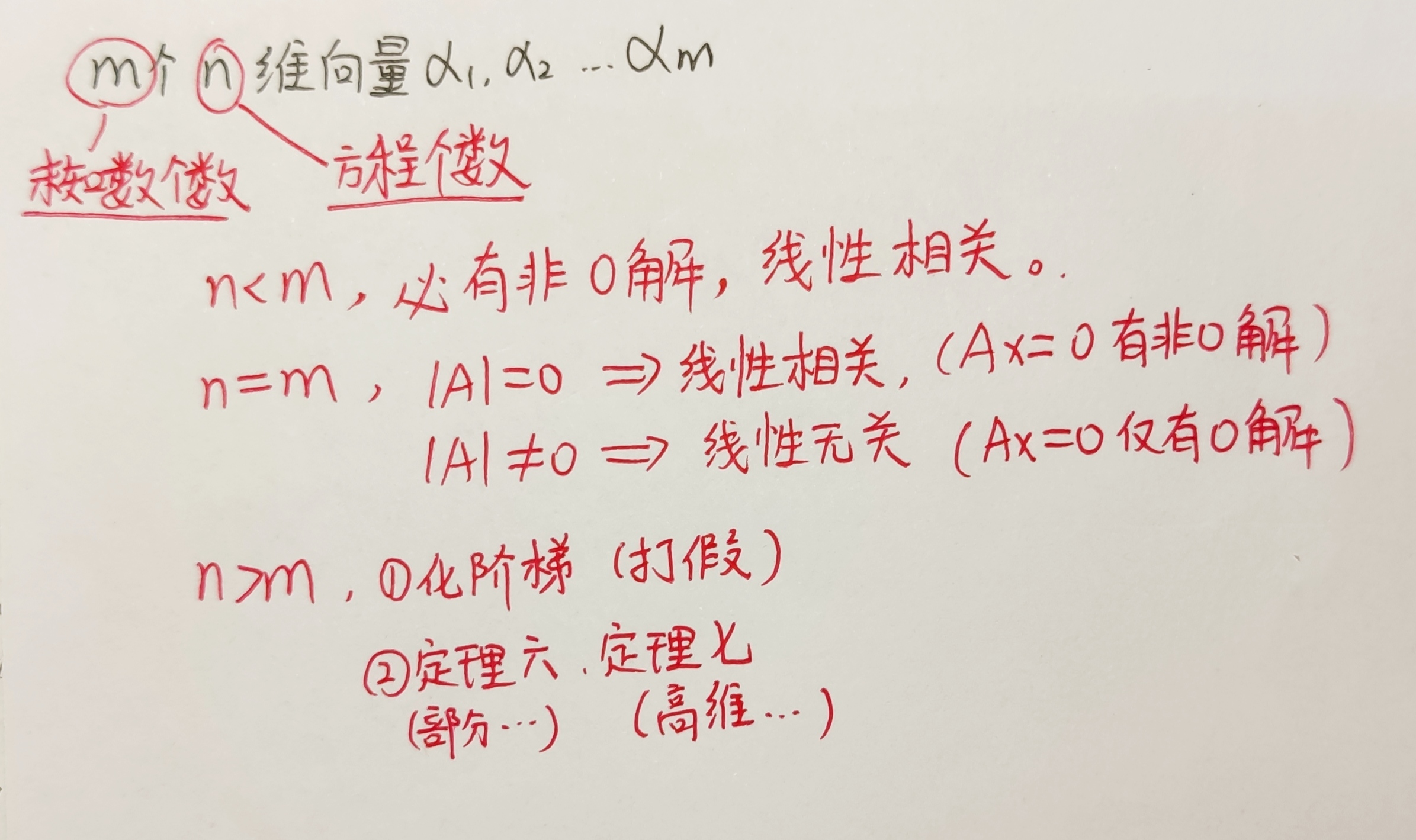 理解线性相关性的部分定理