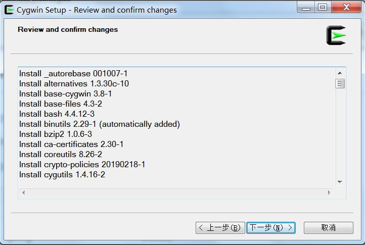 这是即将安装的依赖列表,第一次安装时,Cygwin会安装很多基础的依赖包如cd命令,ls命令等,第二次安装就只有你选择的依赖及其依赖的其他组件。继续点击下一步, 就会自动下载并安装了: