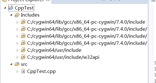 正常的项目会自动将Cygwin下include等包含头文件和依赖库的目录带出来,如果安装了第三方依赖库提示找不到对应头文件,则需要更改图中的include的配置了,如下图: