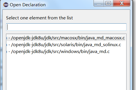 Eclipse比Netbeans强大的是不仅能解析正常的方法调用,也能准确找到同一个类在不同操作系统下的实现,可以帮助我们从整体上了解JVM的实现,如下图: