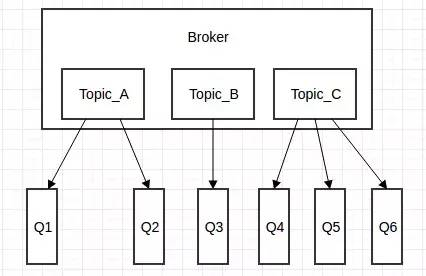 消息队列(Message Queue),主题被划分为一个或多个子主题,即消息队列。一个 Topic 下可以设置多个消息队列,发送消息时执行该消息的 Topic ,RocketMQ 会轮询该 Topic 下的所有队列将消息发出去。下图 Broker 内部消息情况: