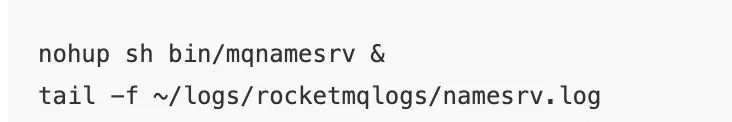 RocketMQ 核心的四大组件中 Name Server 和 Broker 都是由 RocketMQ 安装包提供的,所以要启动这两个应用才能提供消息服务。首先启动 Name Server,先确保你的机器中已经安装了与 RocketMQ 相匹配的 JDK ,并设置了环境变量 JAVA_HOME ,然后在 RocketMQ 的安装目录下执行 bin 目录下的 mqnamesrv ,默认会将该命令的执行情况输出到当前目录的 nohup.out 文件,最后跟踪日志文件查看 Name Server 的实际运行情况。