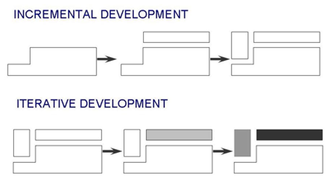 V模型也是在瀑布模型基础上发展出来的,我们发现单元测试、集成测试和系统测试是为了在不同层面验证设计,而交付测试则是确认需求是否得到满足。也就是瀑布模型中前后两端的过程活动具有内在的紧密联系,如果将模块化设计的思想拿到软件开发过程活动的组织中来,可以发现通过将瀑布模型前后两端的过程活动结合起来,可以提高过程活动的内聚度,从而改善软件开发效率。
