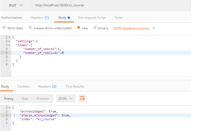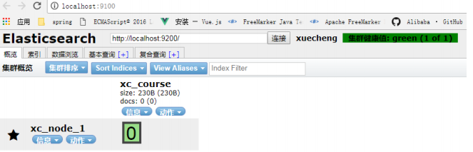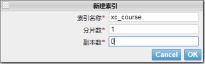 如下是创建的例子,创建xc_course索引库,共1个分片,0个副本: