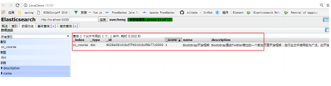 发送:gethttp://localhost:9200/xc_course/doc/_search?q=name:bootstrap