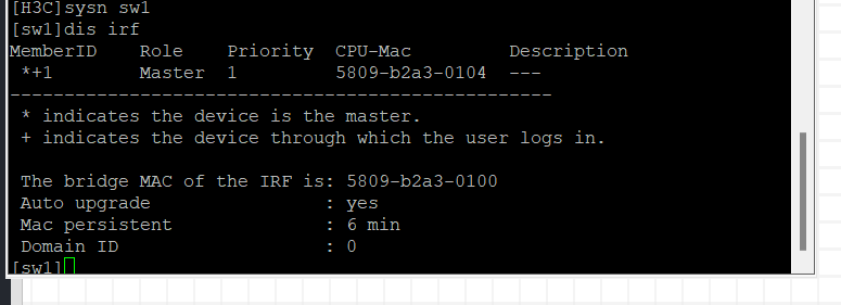 分析:根据需求,交换机 IRF 设备 ID 与设备编号一致,所以需要修改 SW2,SW3,SW4 的 IRF 设备 ID,并保存配置后,重启生效后才可进行后续配置