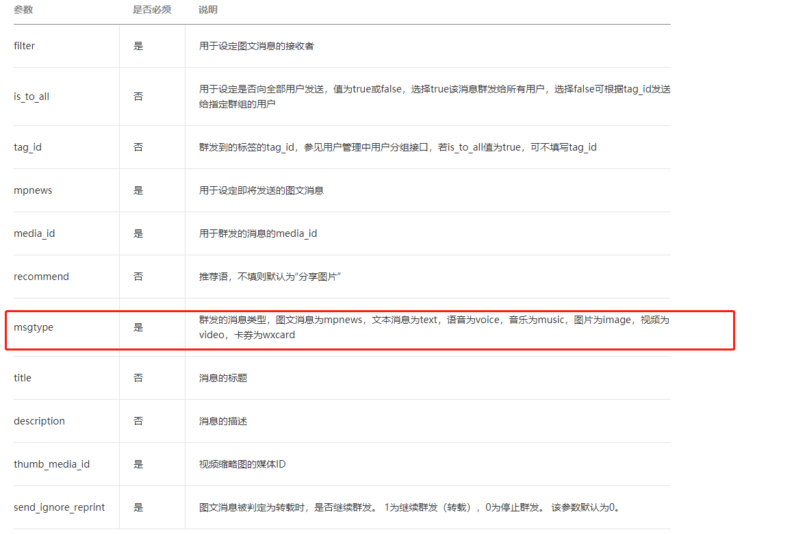 paramMap.put("msgtype","mpnews");//群发的消息类型,图文消息为mpnews