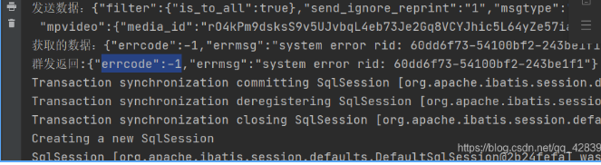}视频我测试时候一直返回-1 查询文档说是系统繁忙 百度说是因为视频需要审核 对了由于我们公司是服务号 所以只支持一个月群发4次 如果你们是订阅号可以一天一次的 因为4次机会被我用完了 所以群发视频的欢迎大家留言指导