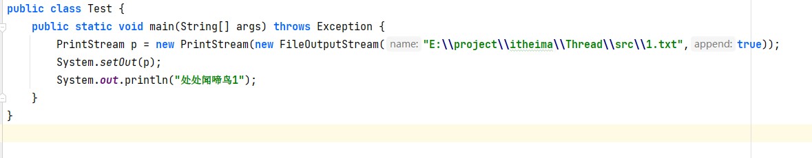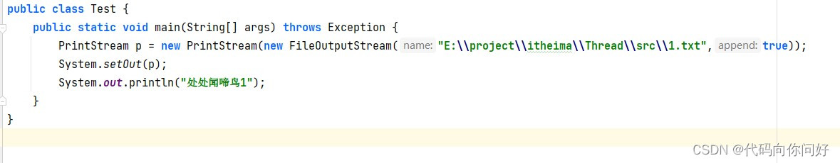 out它其实是一个打印流对象(如果关于打印流对象不明白可以去黑马看看里面讲的挺细的),说白了打印流就是把数据写入到文件中去,如下: