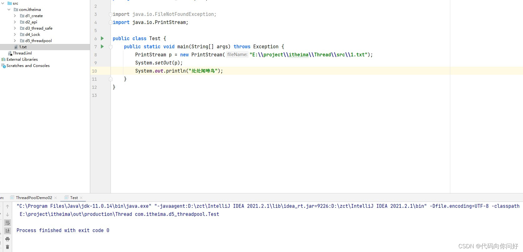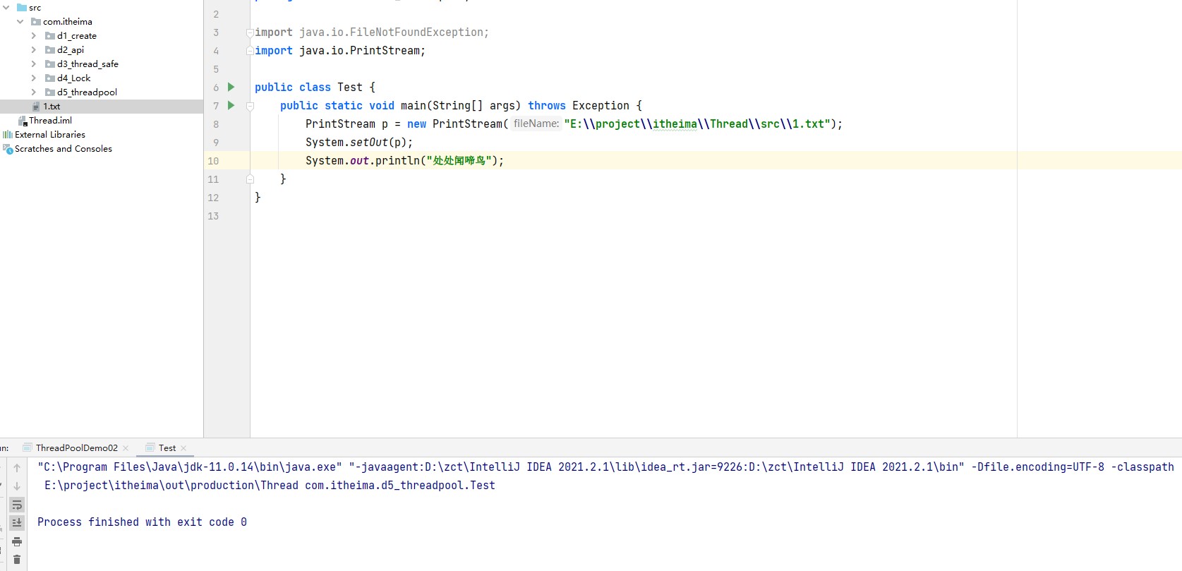 今天我们来实现java的输出重定向,说白了就是把我们在控制台输出的数据放到文件中去,我们在Java中运行System.out.println()或者System.out.print()默认都是输出到控制台中去,如下: