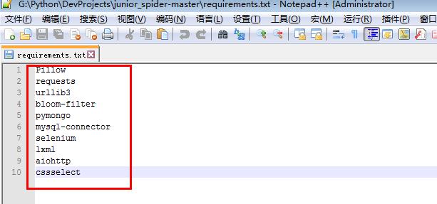 一键安装所需要的工具包文件:requirements.txt
