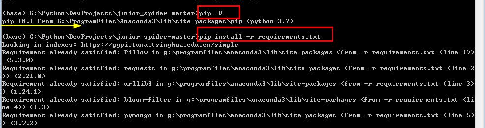 如果显示的是python3版本,则使用:pip3 install -r requirements.txt