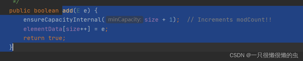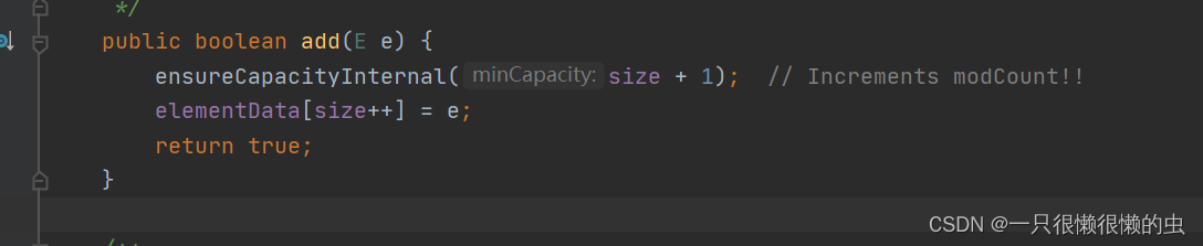 1,底层的数据存储是放在一个数组里的[]. 这里涉及到一个数组长度的初始化大小问题: 默认大小为10; 通常使用的默认无参构造方法,实现即为 this.elementData ={};此时的size = 0;