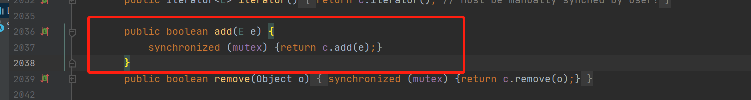 Collections.synchronizedList(startWithHList) 在线程不安全的ArrayList .add()上加了一把锁。从而保证了线程安全。