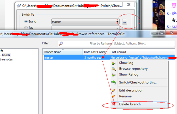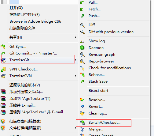 切换到想要回滚版本的分支(如develop),showlog,选中想要回滚的版本,reset develop to this...,然后revert本地库,再创建本地库新分支branch,切换分支到新分支(如hongbao1),最后push