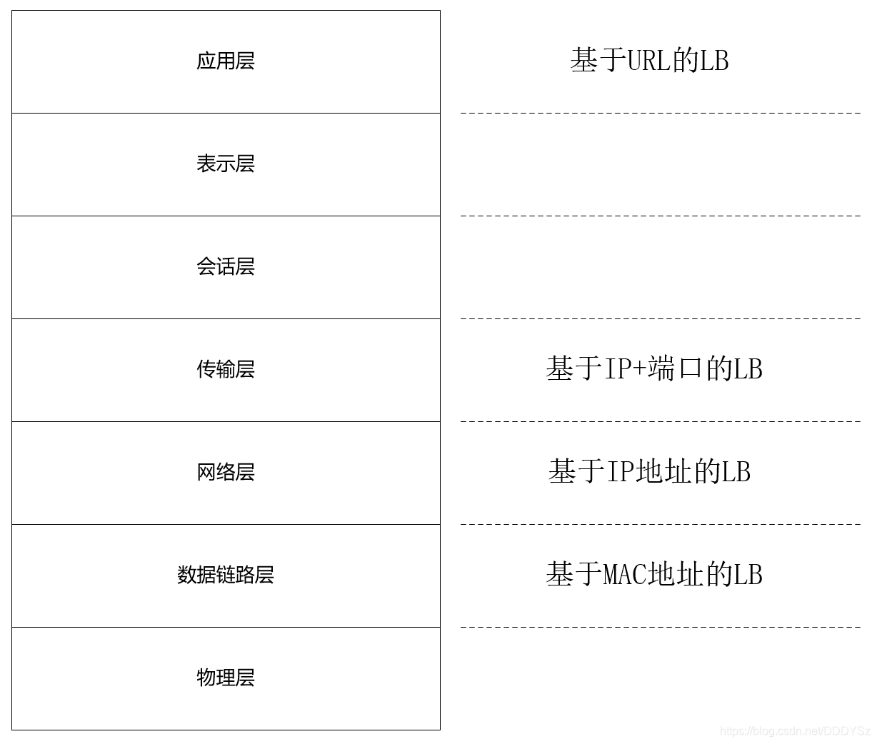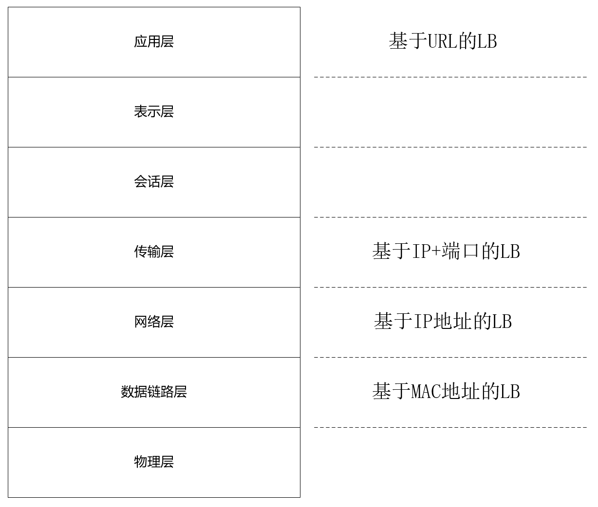 这些连接处在实际做「负载均衡」的时候,需要结合所处的网络层次。因为在不同的网络层次有不同的做法。如下图。