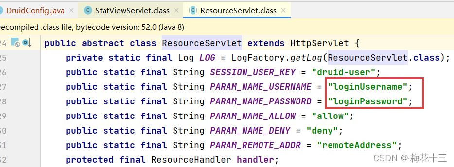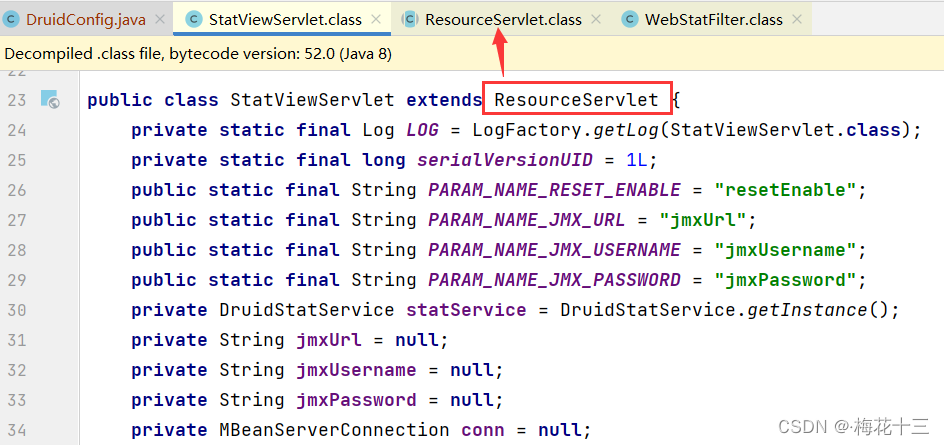 }initParams里设置的属性,可以在StatViewServlet类的父类中找到其设置的key属性名称