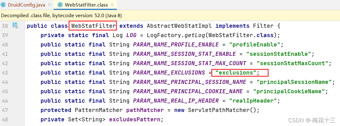 }initParams设置的key属性值,可以在WebStatFilter类中找到