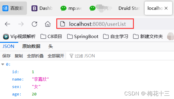 比如我们现在访问整合JDBC中写的,查询所有用户方法:http://localhost:8080/userList