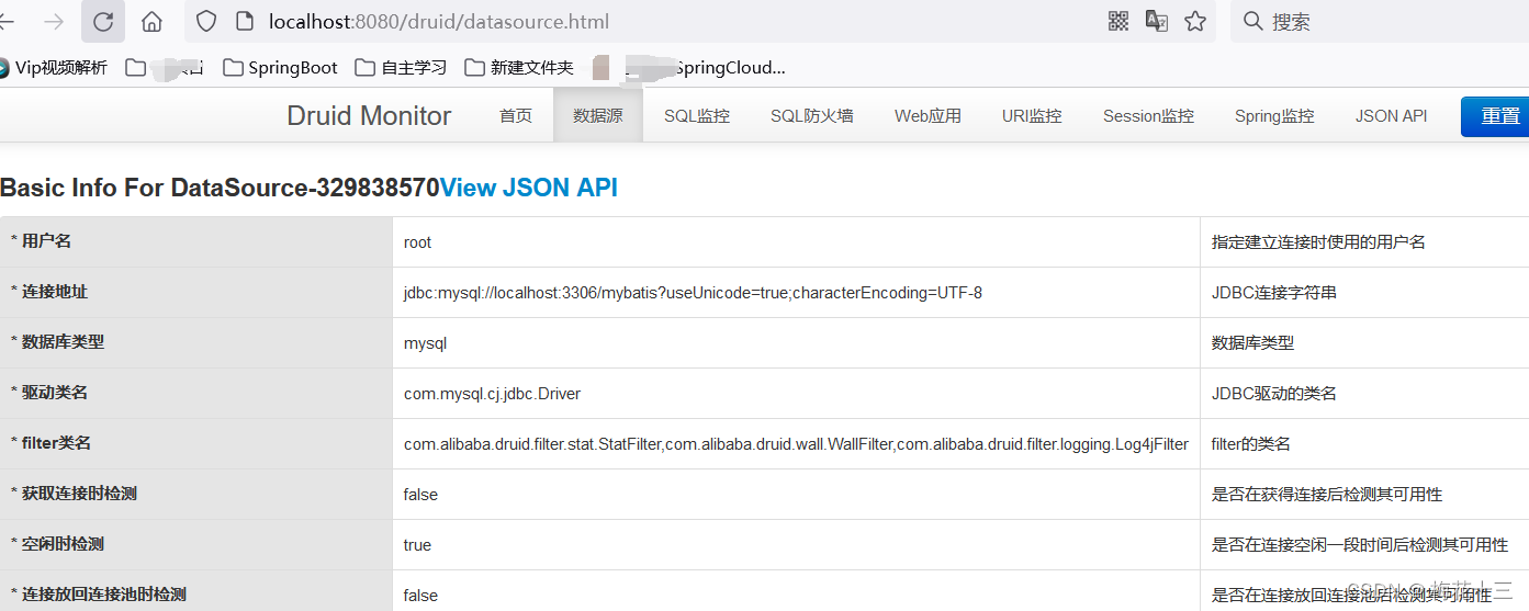 前缀为 spring.datasource的属性值注入到 com.alibaba.druid.pool.DruidDataSource 的同名参数中