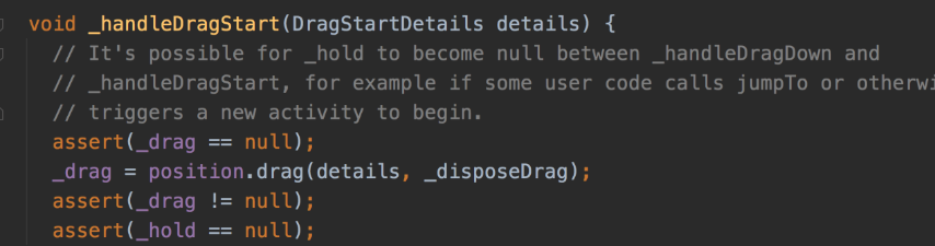 通过这几个方法,我们可以看到,手势的开始是通过“scrollPosition”生成了一个drag对象,然后接下来的update,end都是让这个对象进行处理,因此这个对象才是真正决定了当前的scrollView如何应对用户的操作,而进行相应的改变的处理类。接下来我们就重点来看这个类都做了什么。