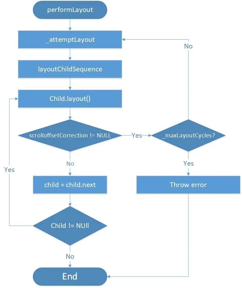 里面有个特殊场景会抛出Error的异常,我们在布局每个child的过程中,会把当前scrollview的offset作为输入给当前正在布局的child,而某些chid在做内部布局的时候,可能会认为scrollview给的offset会有问题需要矫正。比如说用来展示长列表的SliverList在做内部布局的时候,如果SliverList发现自己的child已经全部布局完了,但是scrollview给的offset还没有填满,这时候就会认为scrollview给的offset太长了,会给一个矫正值,让它缩短回去。