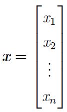 一个向量就是一列数,这些数是有序排列的。用过次序中的索引,我们可以确定每个单独的数。通常会赋予向量粗体的小写名称。当我们需要明确表示向量中的元素时,我们会将元素排列成一个方括号包围的纵柱: