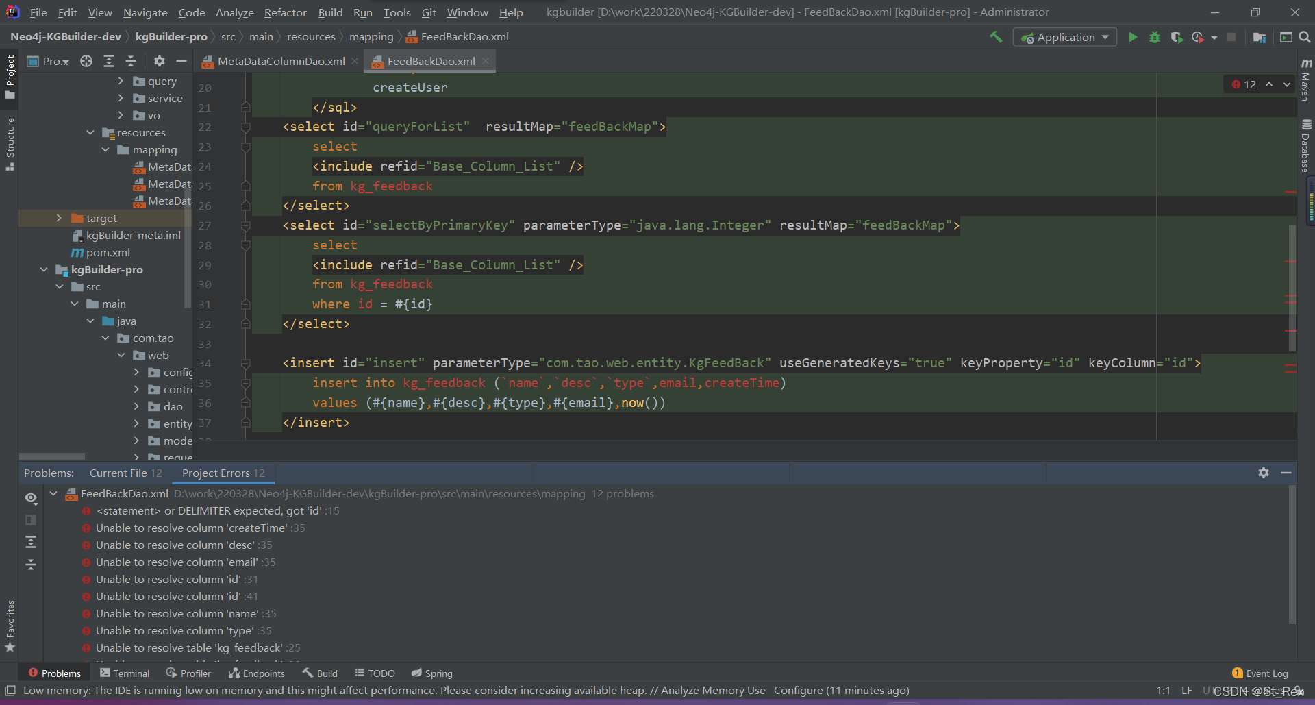 不知道误操作了啥,正常写的SQL映射文件报错了,如下: