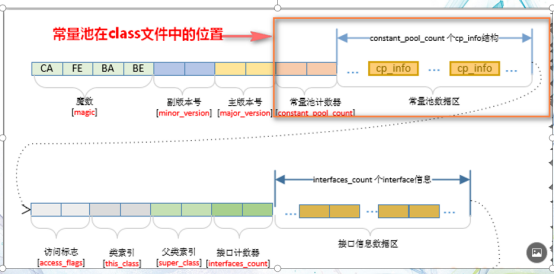 紧接着主次版本号之后的是常量池入口,常量池可以理解为Class文件之中的资源仓库,它是Class文件结构中与其他项目关联最多的数据类型,也是占用Class文件空间最大的数据项目之一,同时它还是在Class文件中第一个出现的表类型数据项目。
