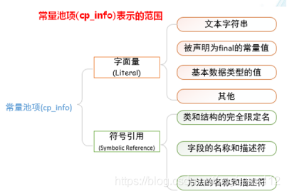 常量池中主要存放两大类常量:字面量(Literal)和符号引用(Symbolic References)。