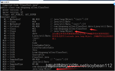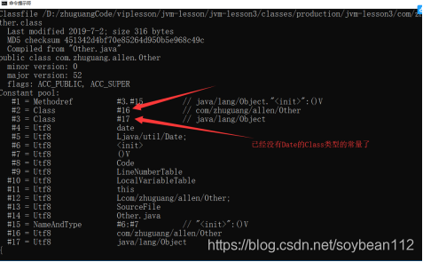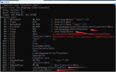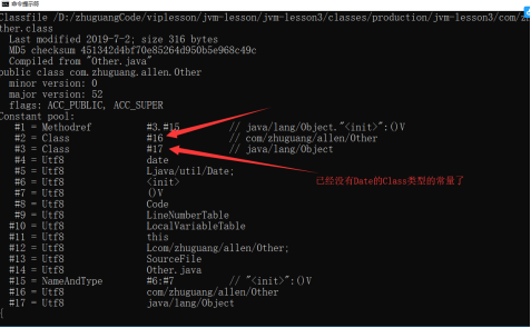 这时候使用javap -v Other ,可以查看到常量池中有表示java/util/Date的常量池项: