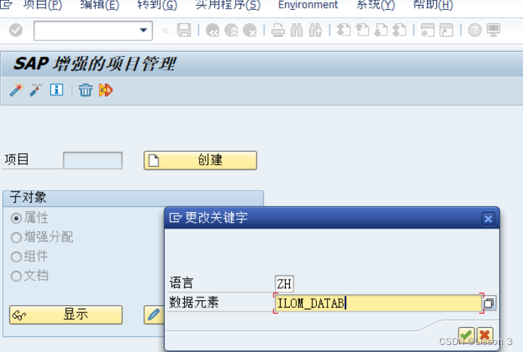 2.CMOD->转到->文本增强->关键字->更改