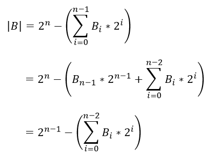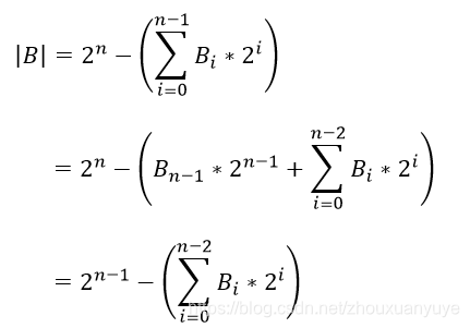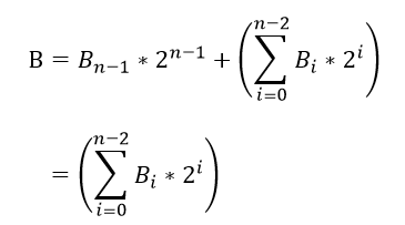 当B>=0,B的第n-1比特为0,则B可用下式表示: