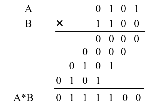 思考题:A=-5,B=12,求A*B的结果,请列出其二进制竖式。