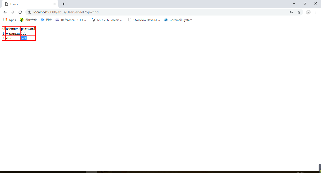 显示数据库里所有用户信息: