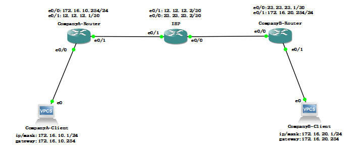 CompanyA-Router为A公司的出口路由器,上联至ISP,e0/1做nat