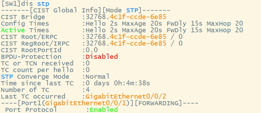 [SW1-GigabitEthernet0/0/5]stp loop-protection