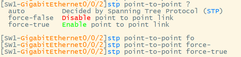 4、链路类型:802.1W中存在两种链路类型1.point-to-point点对点类型2.shared共亨型强制链路类型为point-to-point :