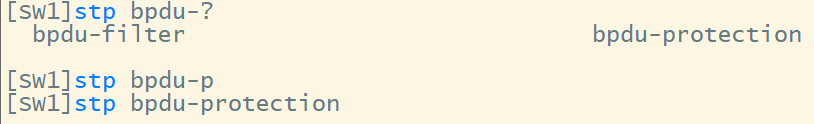 [SW1-GigabitEthernet0/0/5]stp bpdu-filter enable